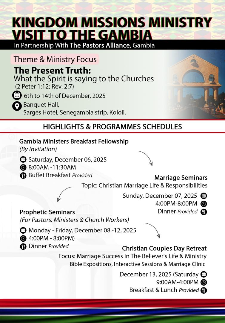 Join us for an amazing spiritual and recreational experience in The Gambia. Register now to secure your spot!